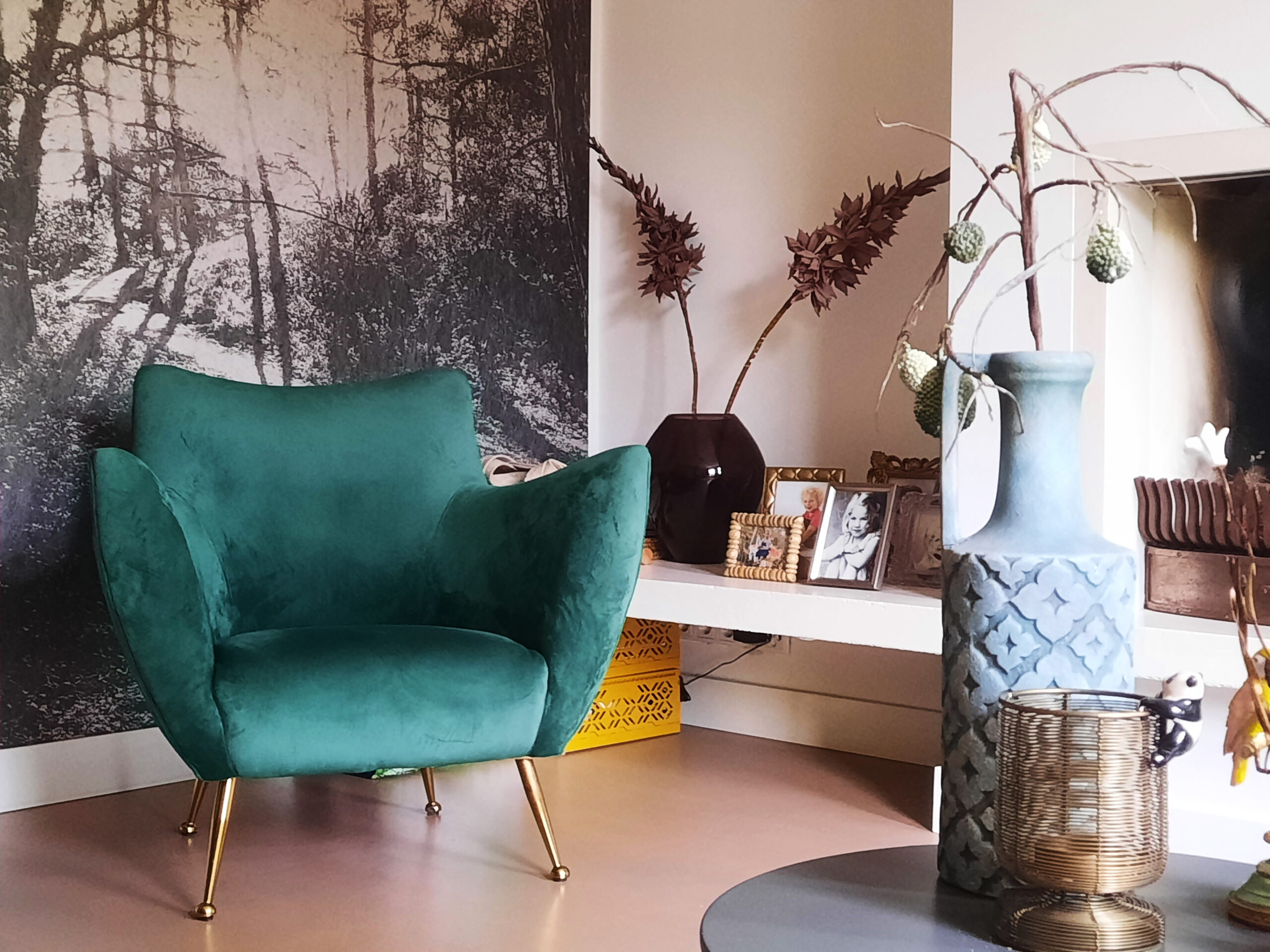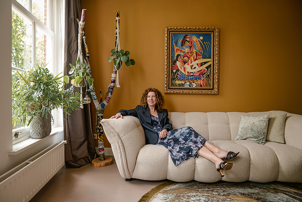 In dit karakteristieke huis in Den Bosch bevinden de keuken en woonkamer zich op verschillende verdiepingen, waarbij de woonkamer op de eerste verdieping ligt. Voor dit interieur heb ik, als kunstenares en interieurontwerpster, kunst als uitgangspunt genomen om sfeer en identiteit te creëren.